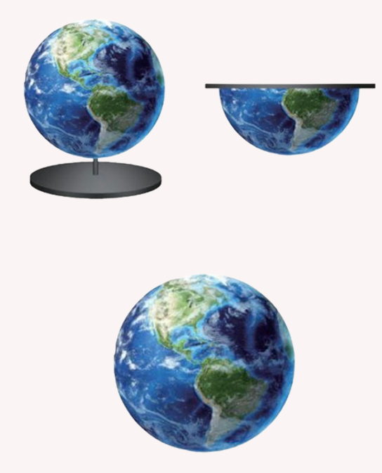 - Transparent cylindrical structure creates floating 3D visuals